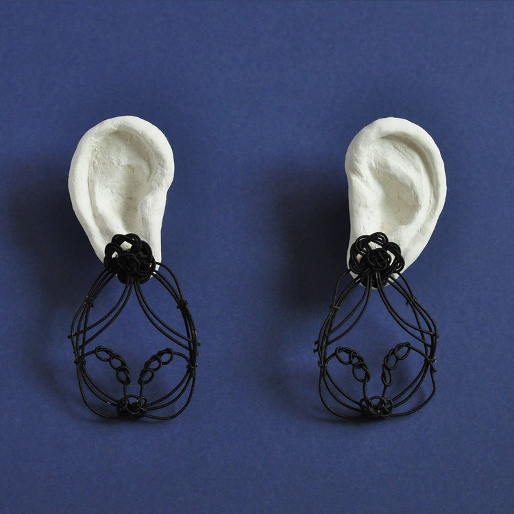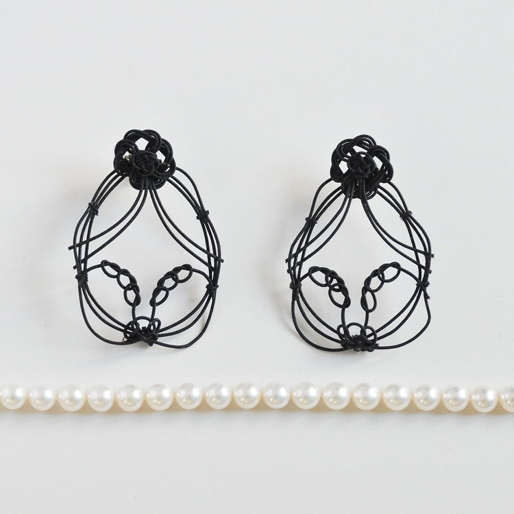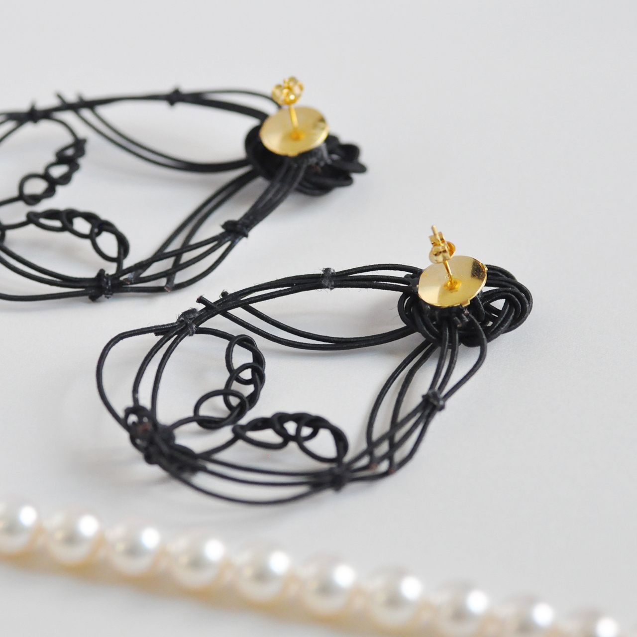 黑色水引在日本通常用於非節日包袋,在節日場合從來不會出現。然而,這次我們敢於只使用黑色,並創造了耳環,使得形狀不是透過「顏色」而是透過「光」和「影」來感受的。