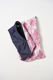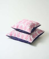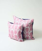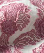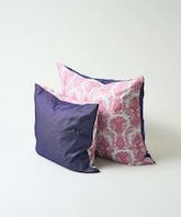 Cut jacquard with a damask pattern in subdued pink on a white background and a jacquard weave fabric with a soft blue jeans-like texture are used to make cushion covers. The unique and charming jacquard weave fabric is perfect for accenting your room.
