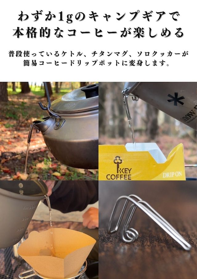 將您的日常水壺、鈦馬克杯或獨立炊具轉變為簡單的咖啡滴壺,減輕您的裝備的重量!