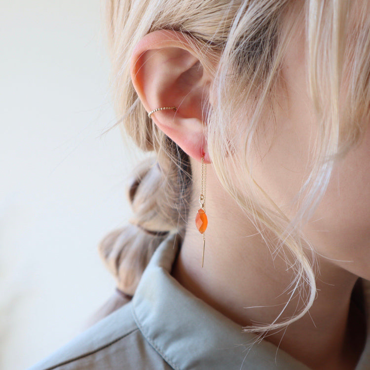 這些耳環由欖尖形切割紅玉髓製成。