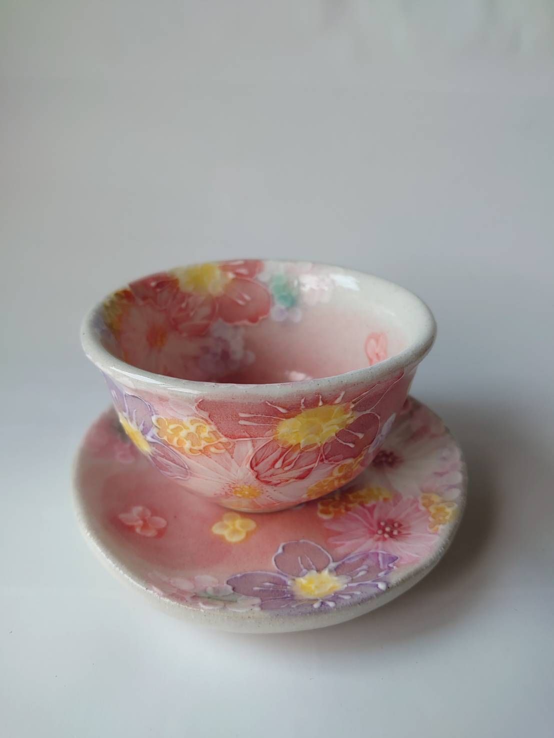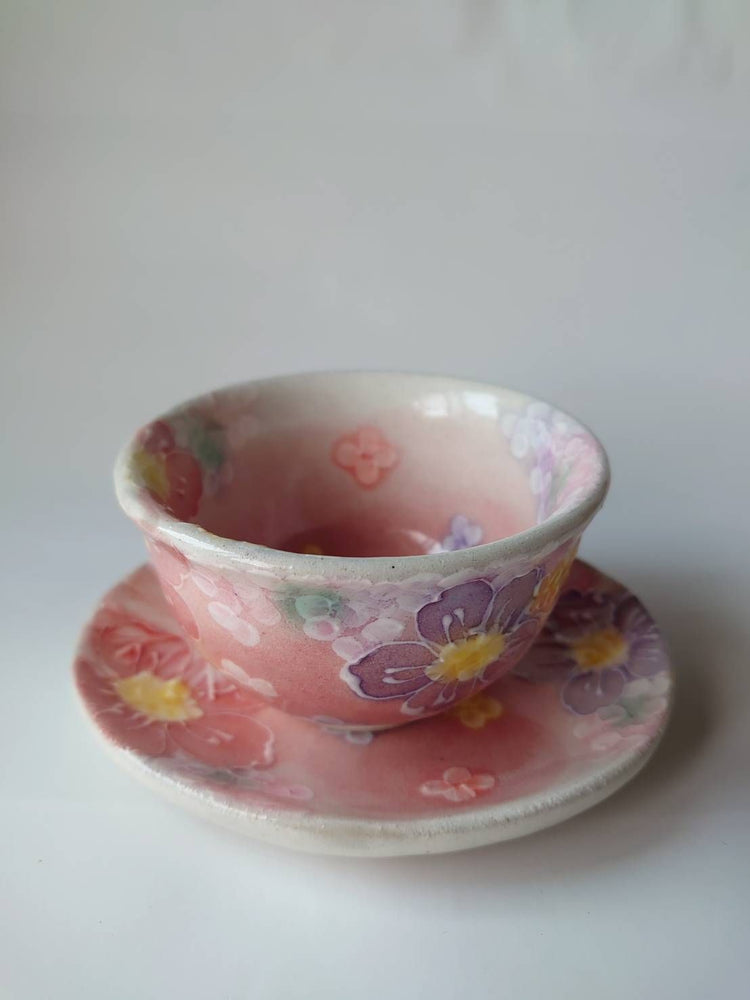 여성들이 티타임을 즐길 때 사용할 수 있는 찻잔과 받침입니다.