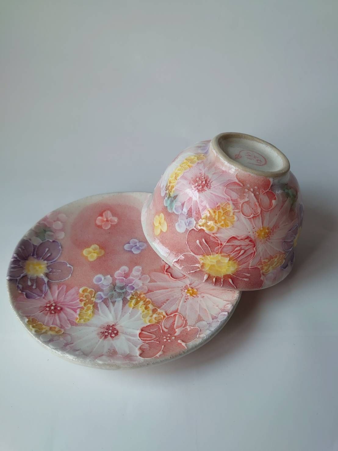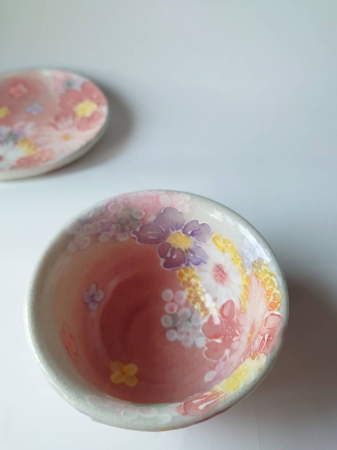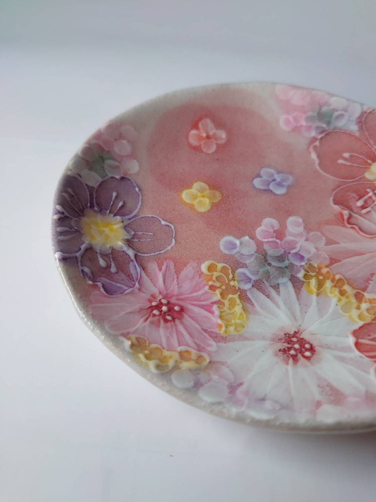 스튜디오 유즈리하 차카 세트, 연어색의 부드러운 꽃무늬가 있는 매우 아름다운 꽃병, 베니사이하나마도리 45281
