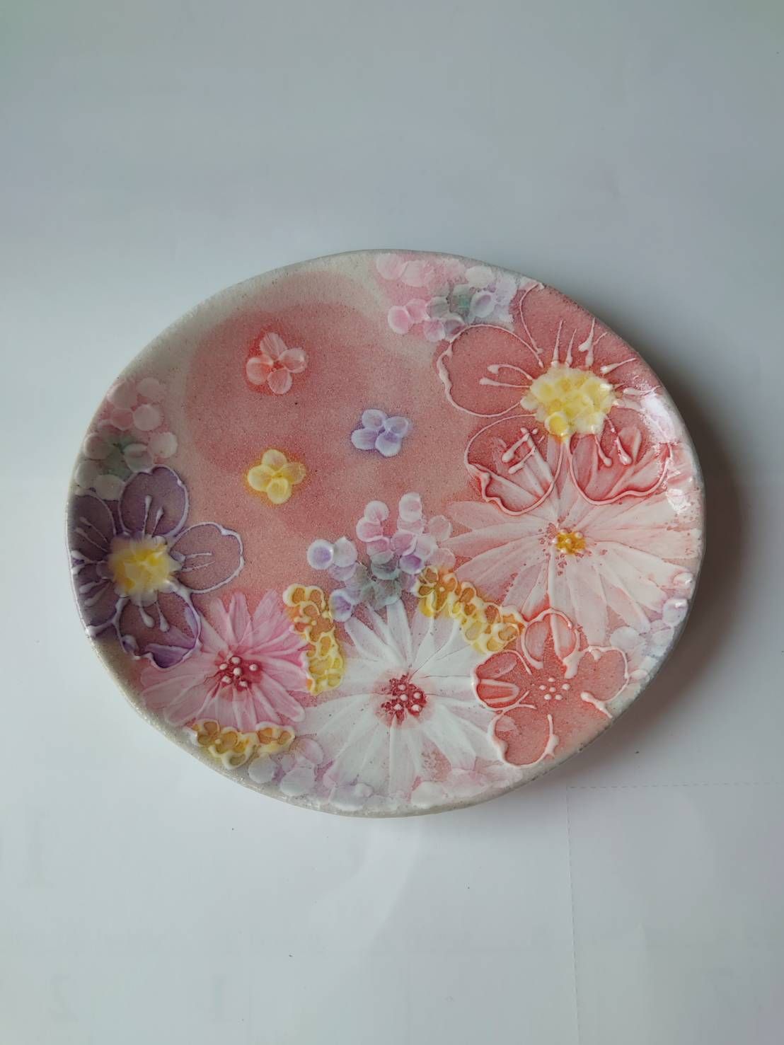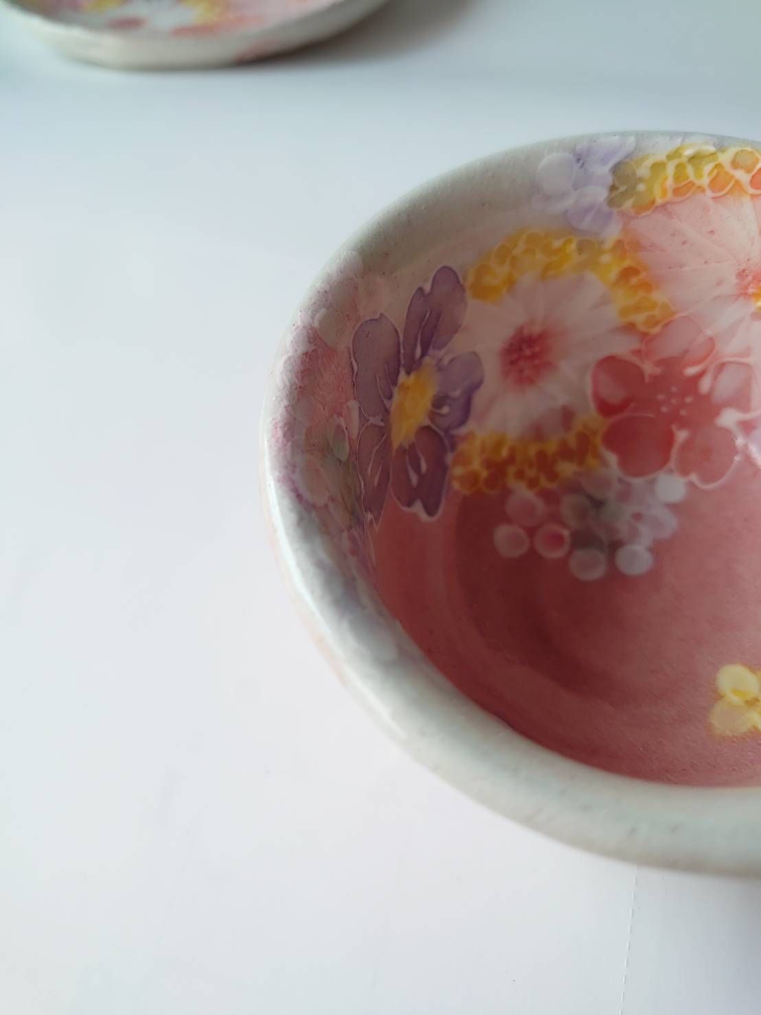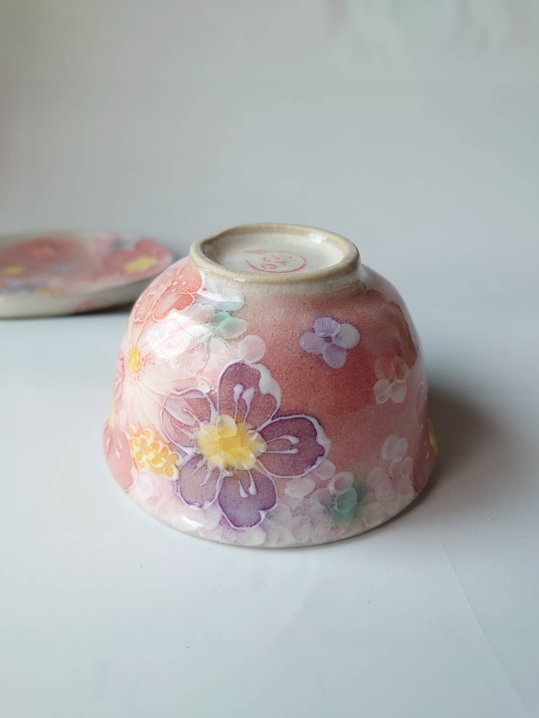 스튜디오 유즈리하 차카 세트, 연어색의 부드러운 꽃무늬가 있는 매우 아름다운 꽃병, 베니사이하나마도리 45281