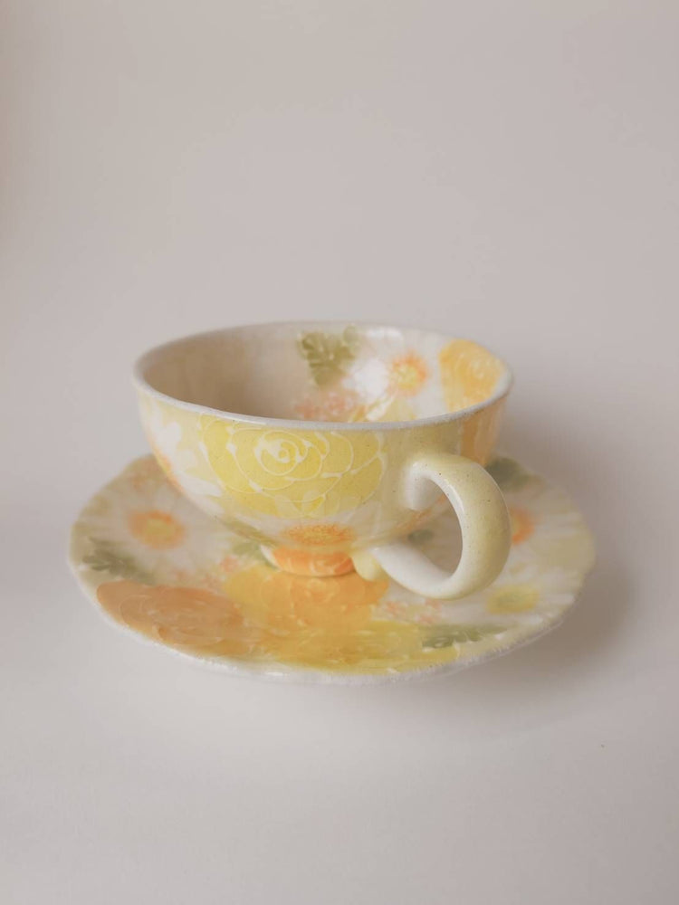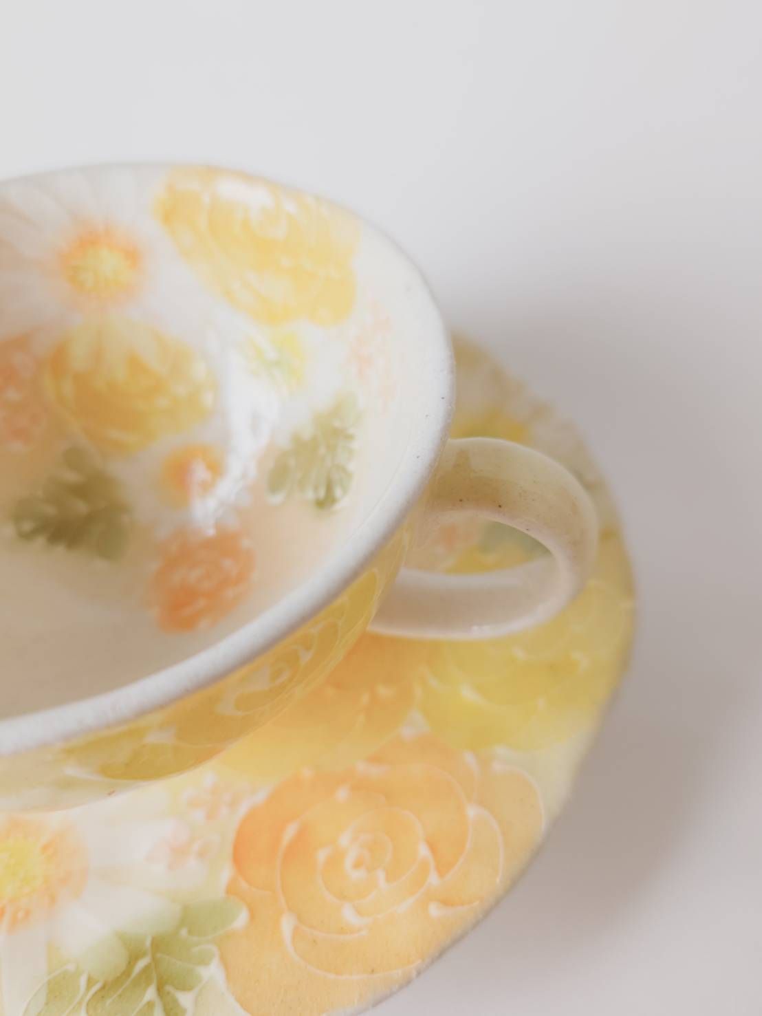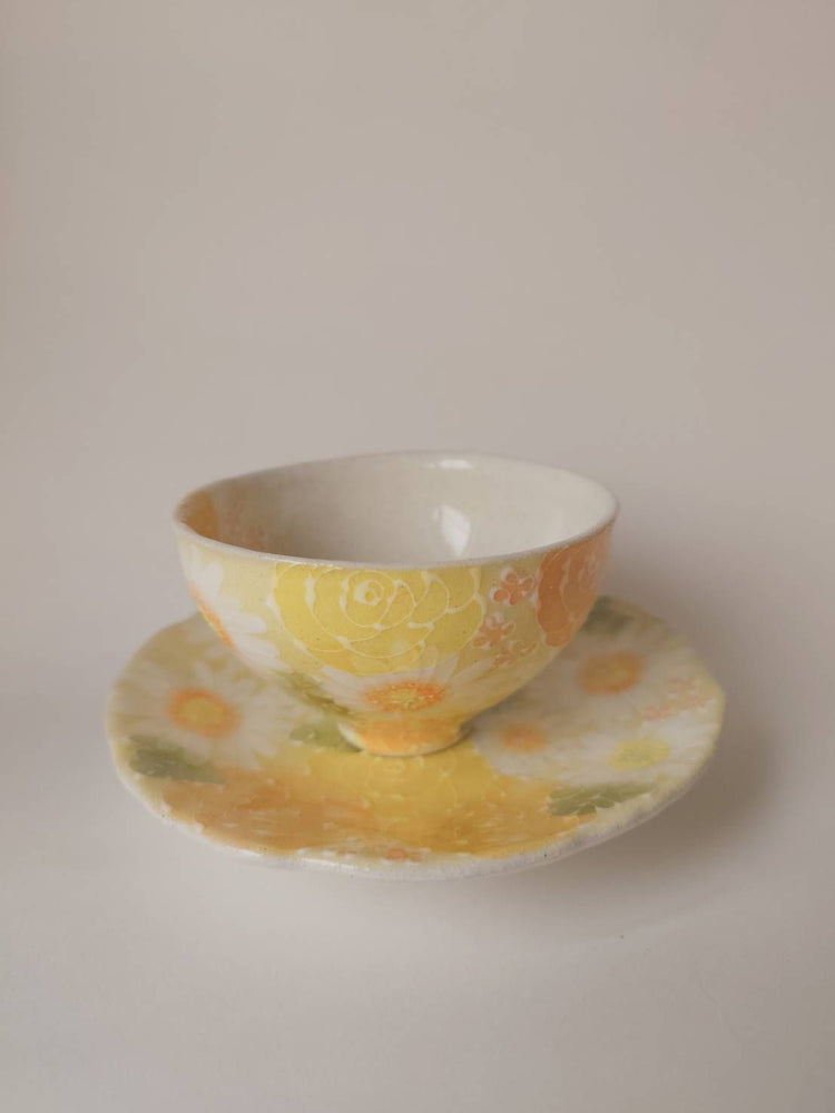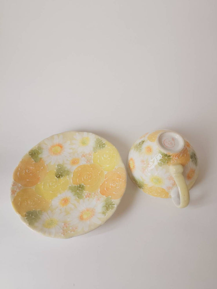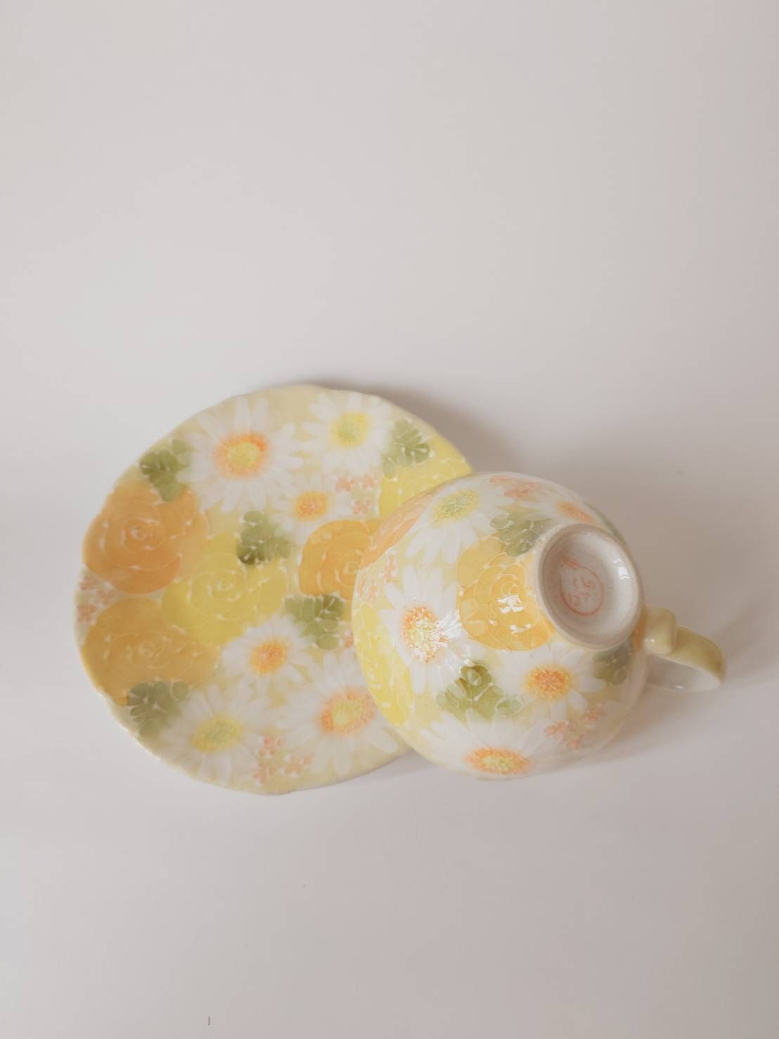 스튜디오 유즈리하 컵 & 접시, 노란색으로 칠해진 꽃