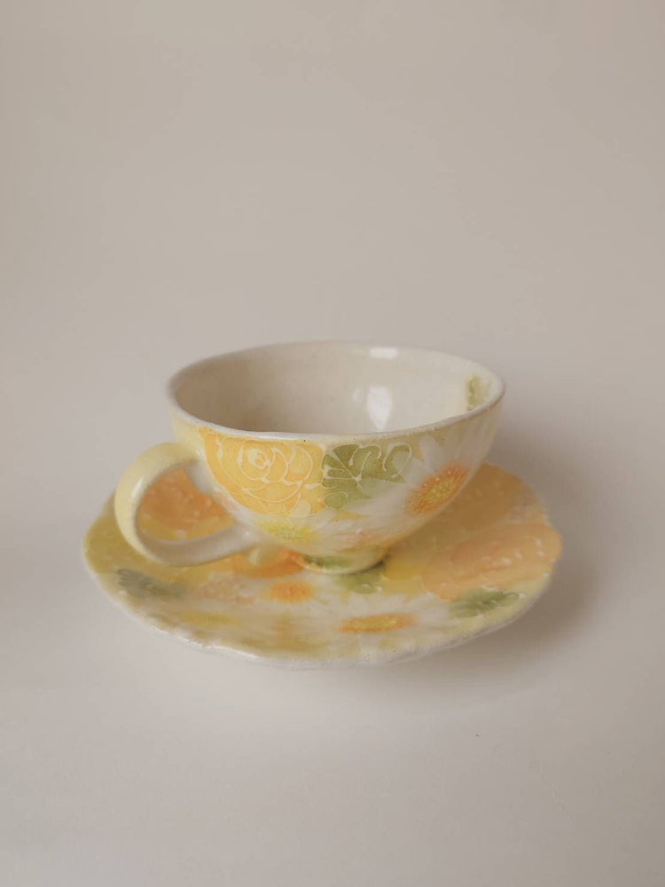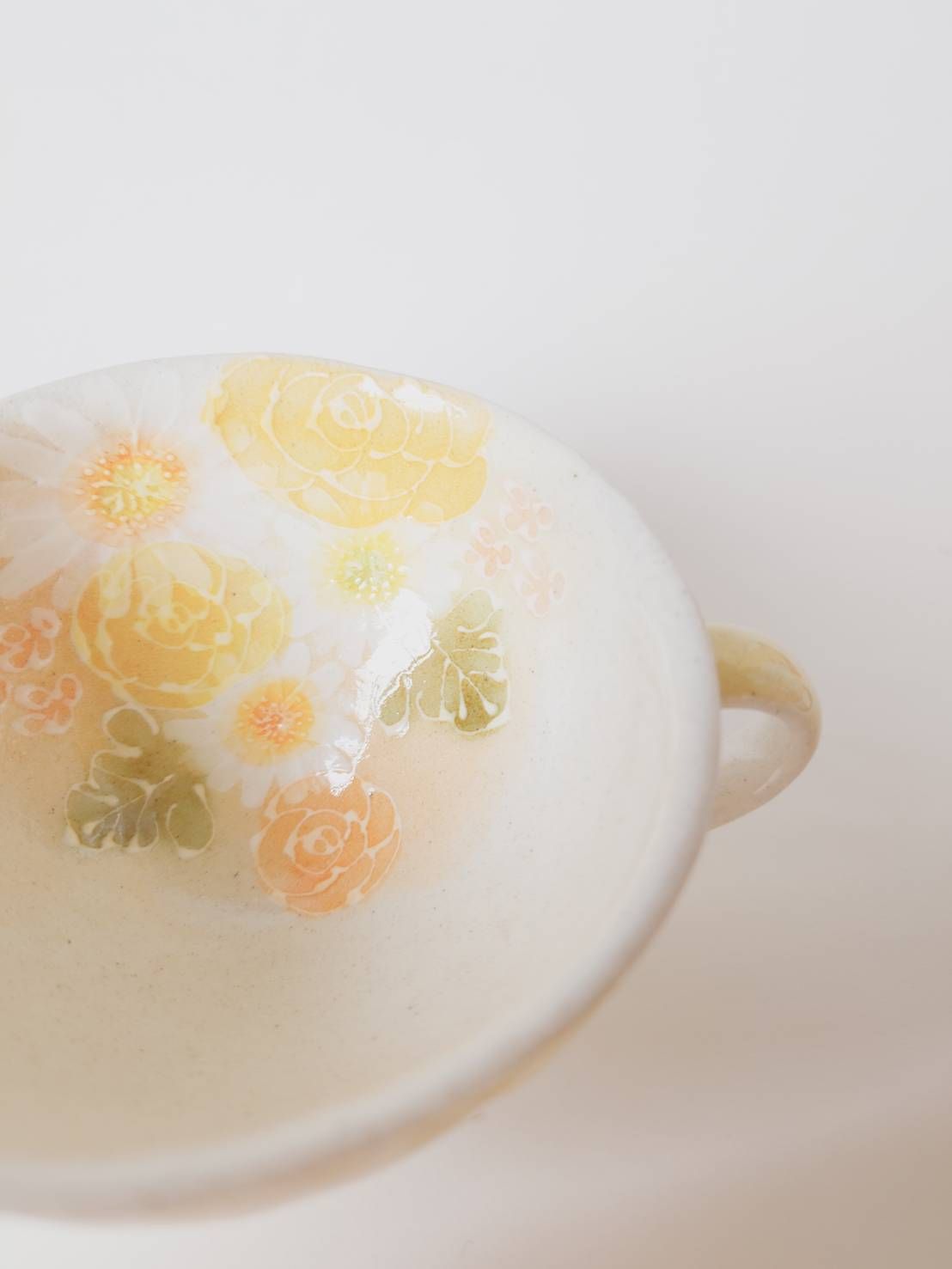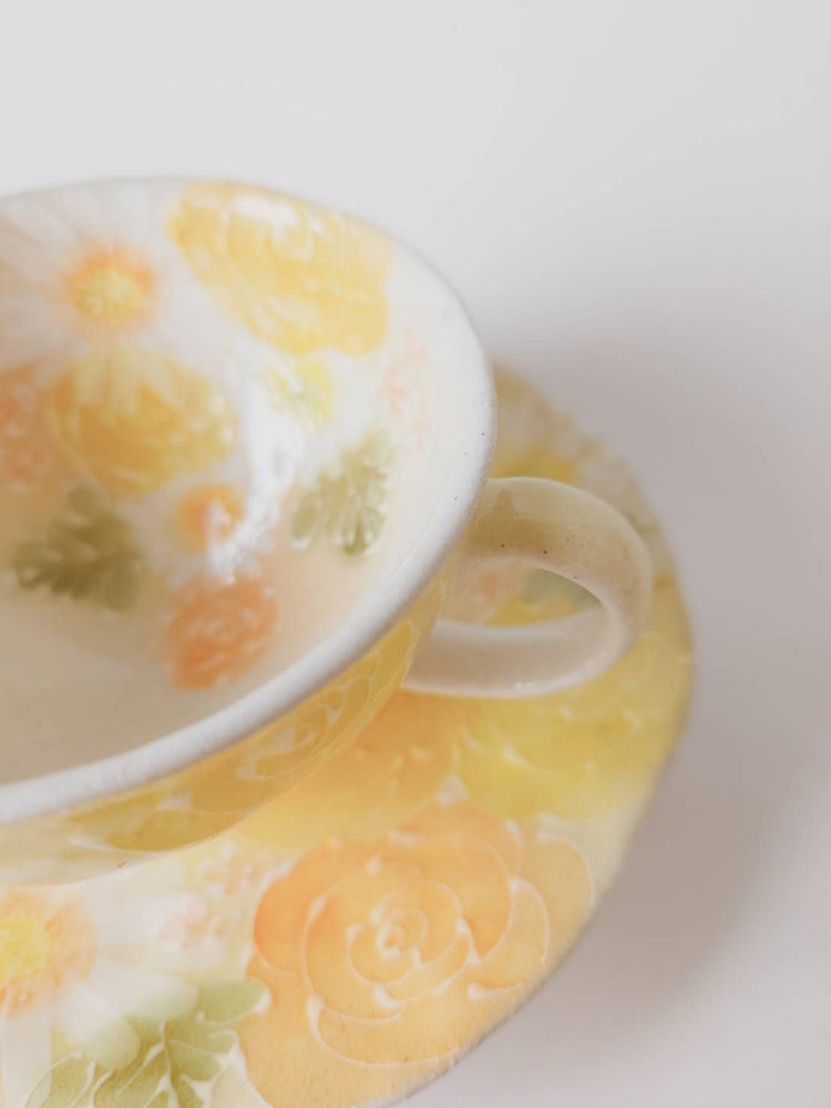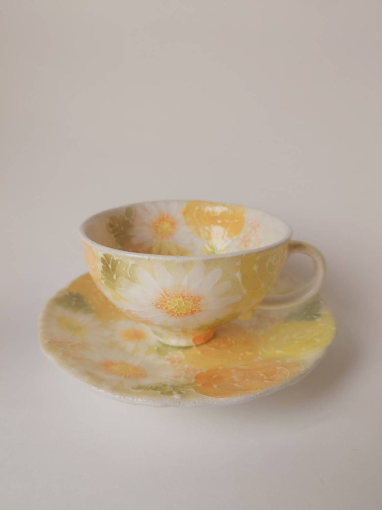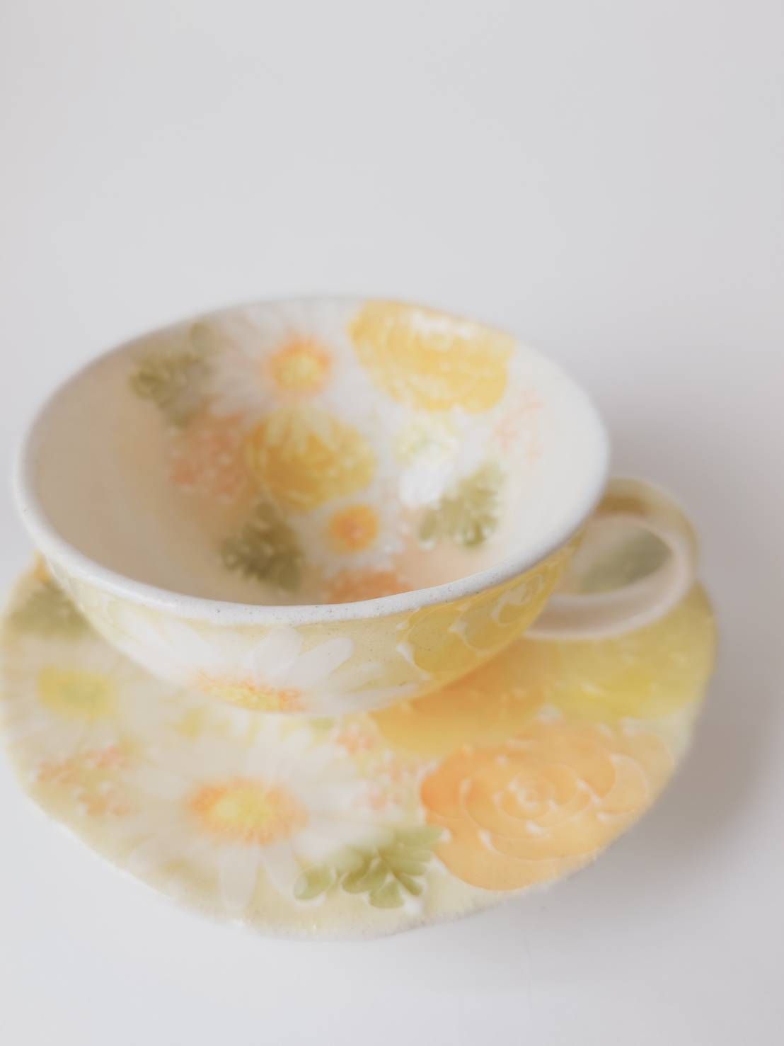 스튜디오 유즈리하 컵 & 접시, 노란색으로 칠해진 꽃