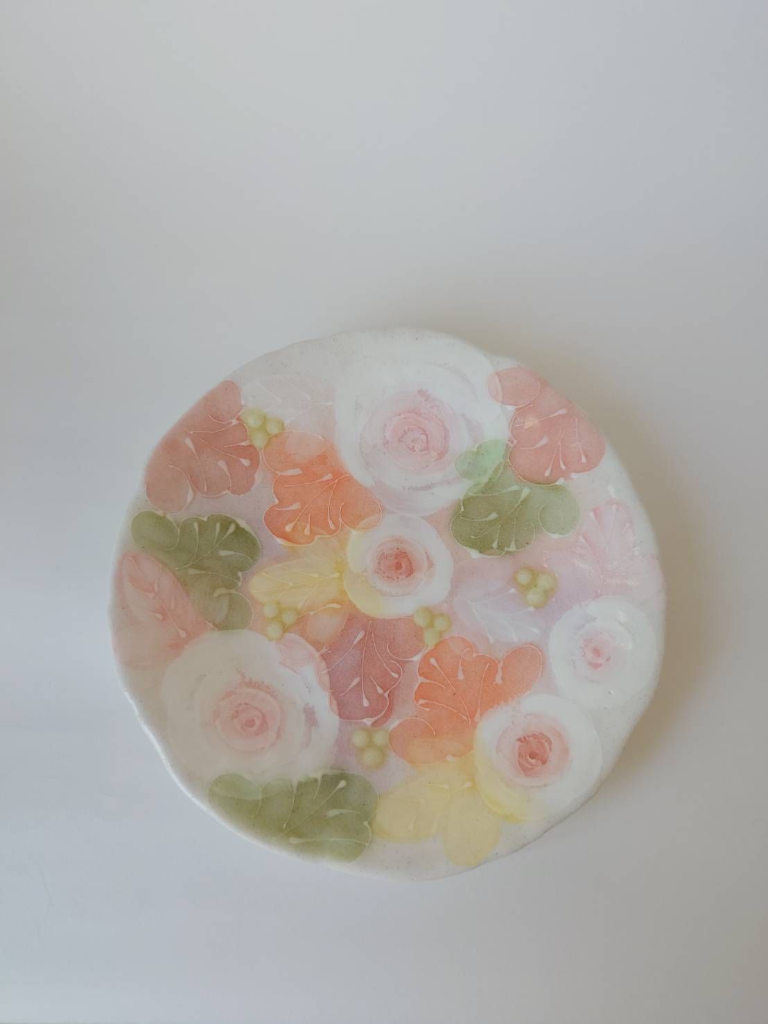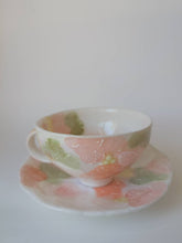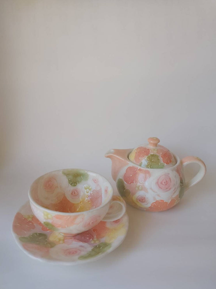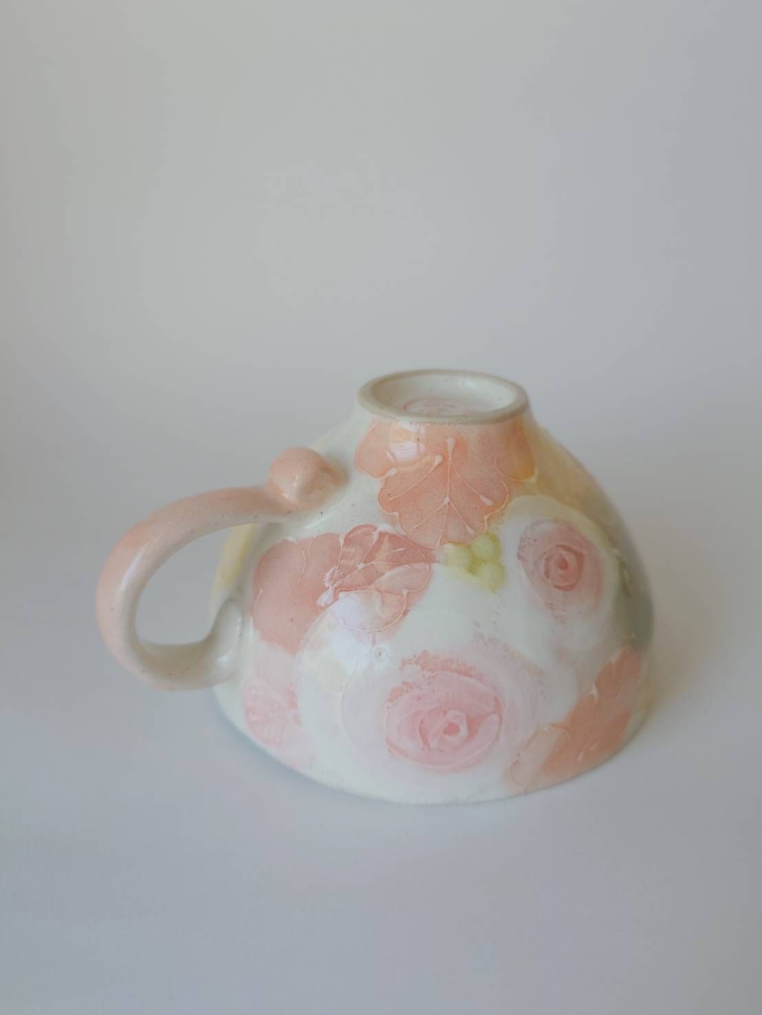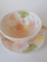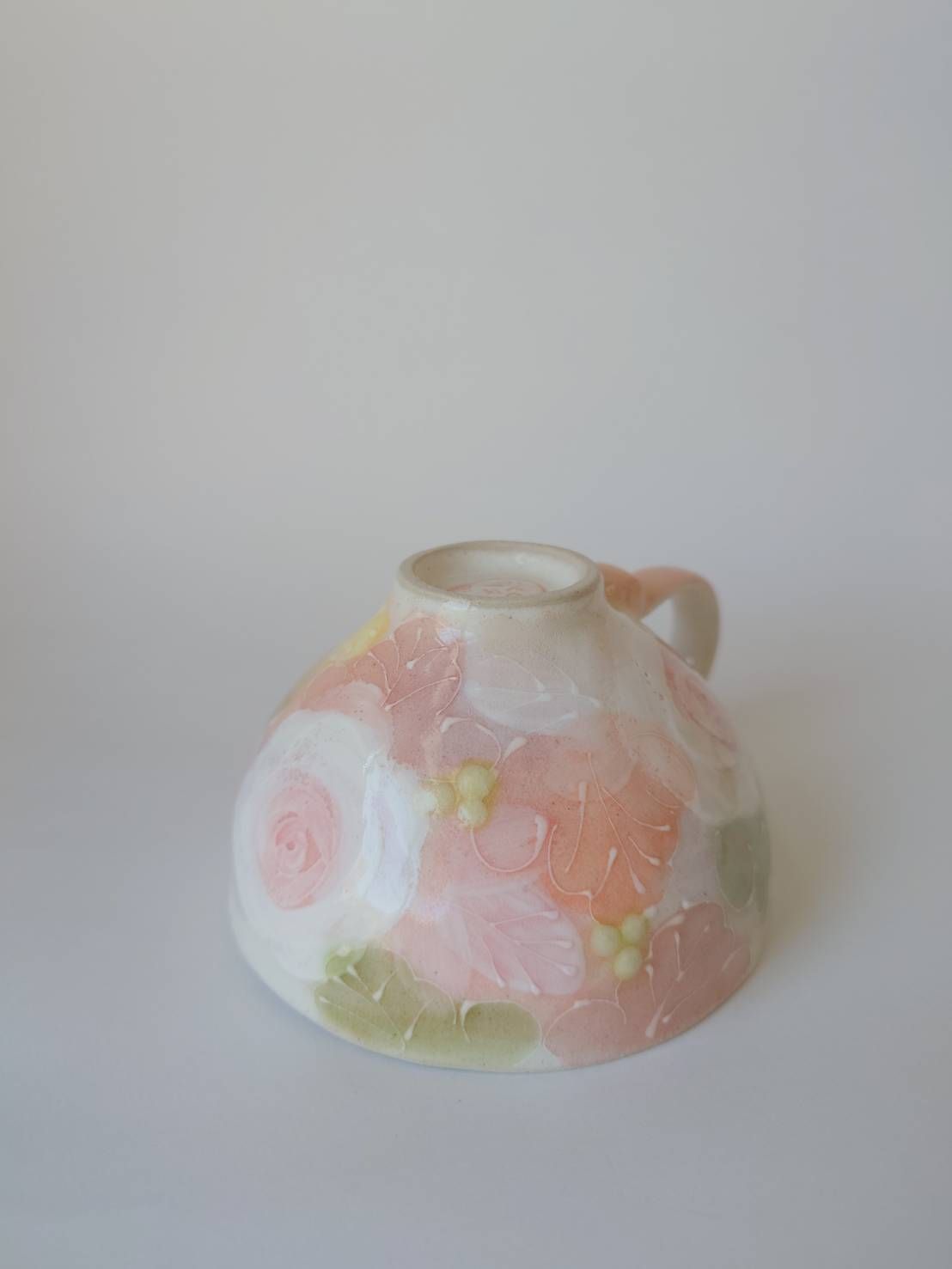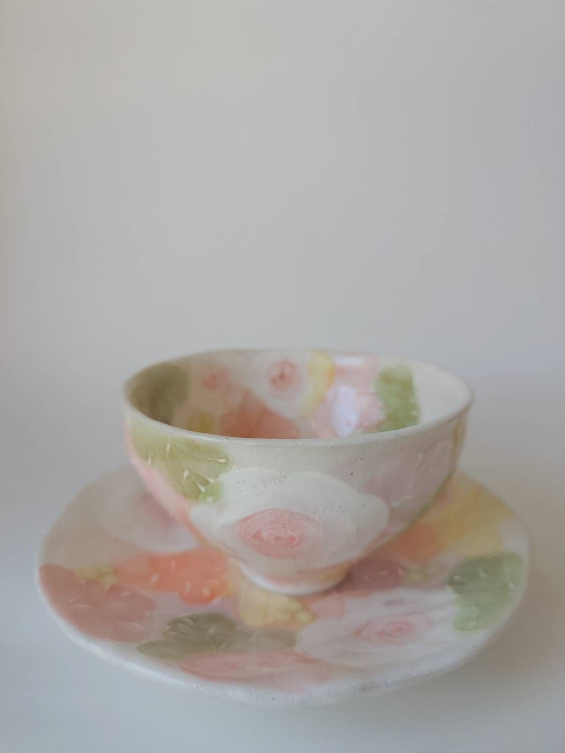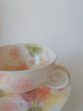 스튜디오 유즈리하 컵 & 소서, 아름다운 변형 핑크 장미, 유약 장미