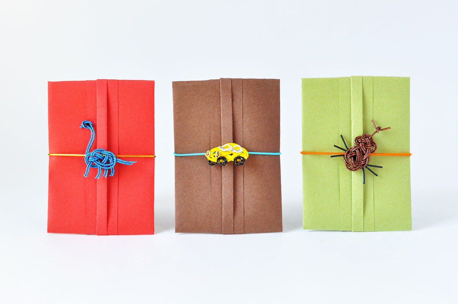 고무끈이 달린 미즈히키 장식, 와시지 오리지미 포치부쿠로, 메시지 카드(각 3세트)