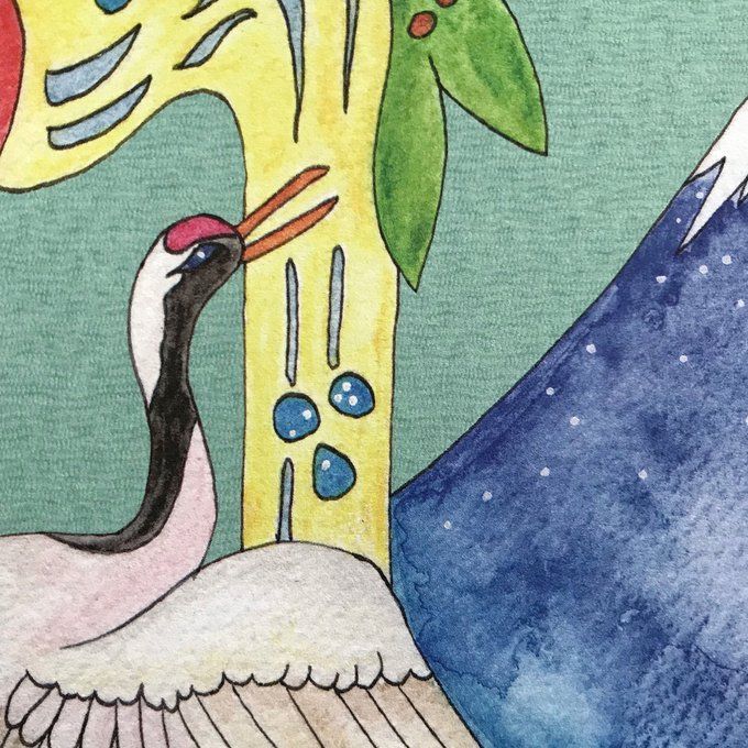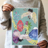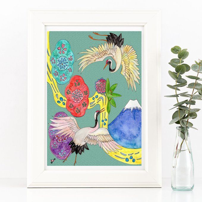 "일본! 두루미와 후지산" 일러스트, A4 오프셋 인쇄