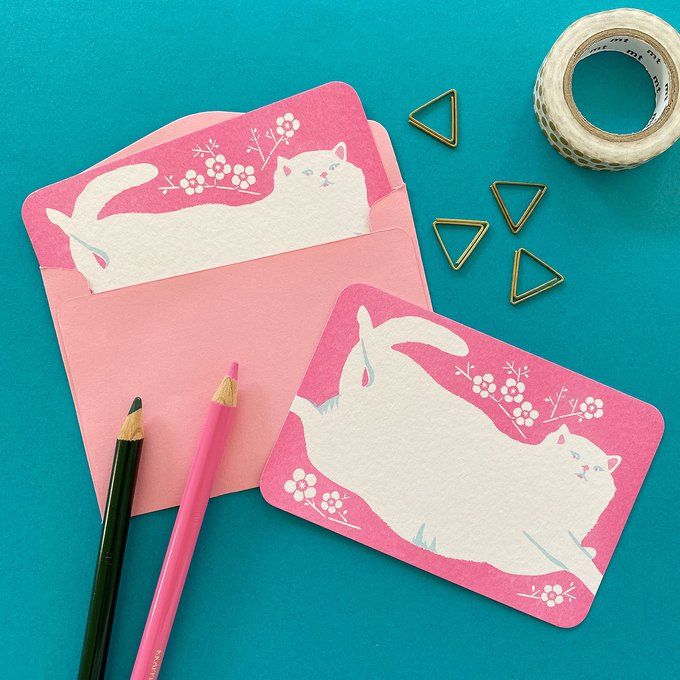 느긋하게 쉬고 있는 고양이의 일러스트를 보며 마음을 달래며 손으로 쓴 메시지를 남겨보는 건 어떨까요?
