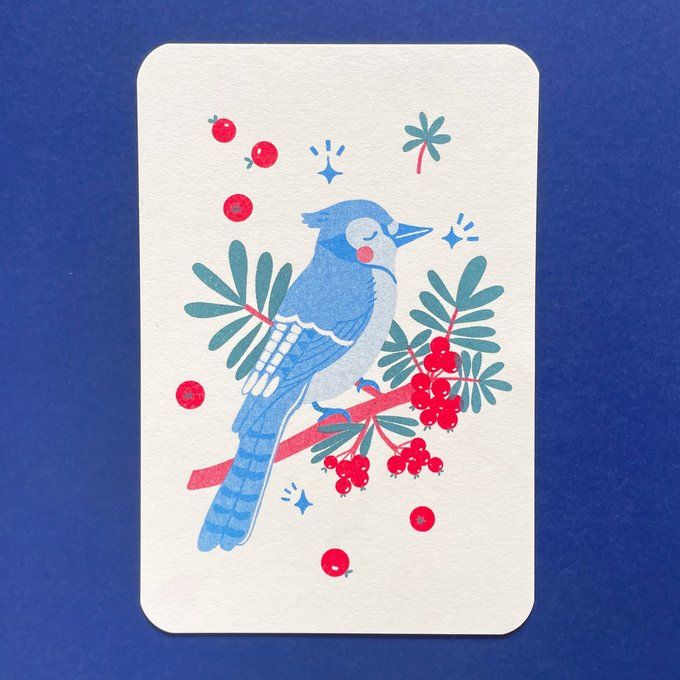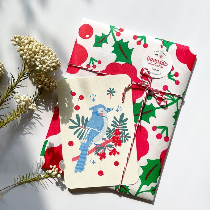 아름다운 푸른색을 띤 파랑까치를 묘사한 겨울 인사말 카드가 출시되었습니다!