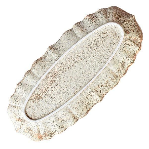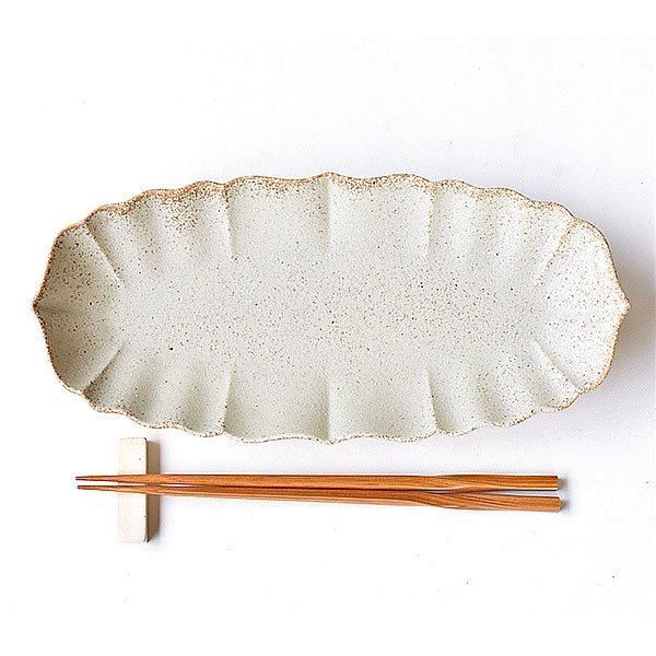로터스 28cm 타원형 얇은 긴 접시 흰색 흰색 유형 서양식기 변형 접시 일본산 미노야키, 세련되고 모던