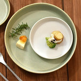 일본산 쿠진스톤 매트스푸메 S 화이트 원형 접시, 미노야키, 세련되고 모던
