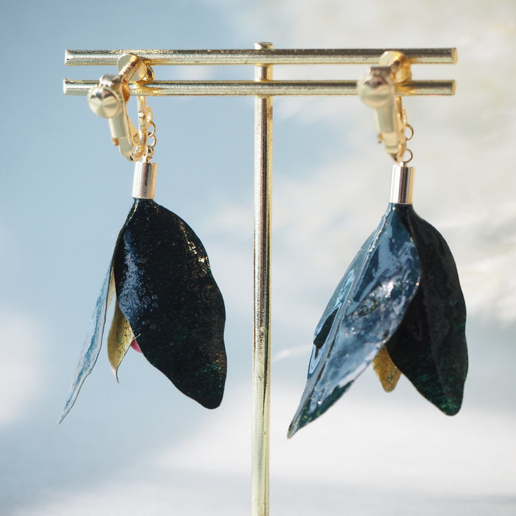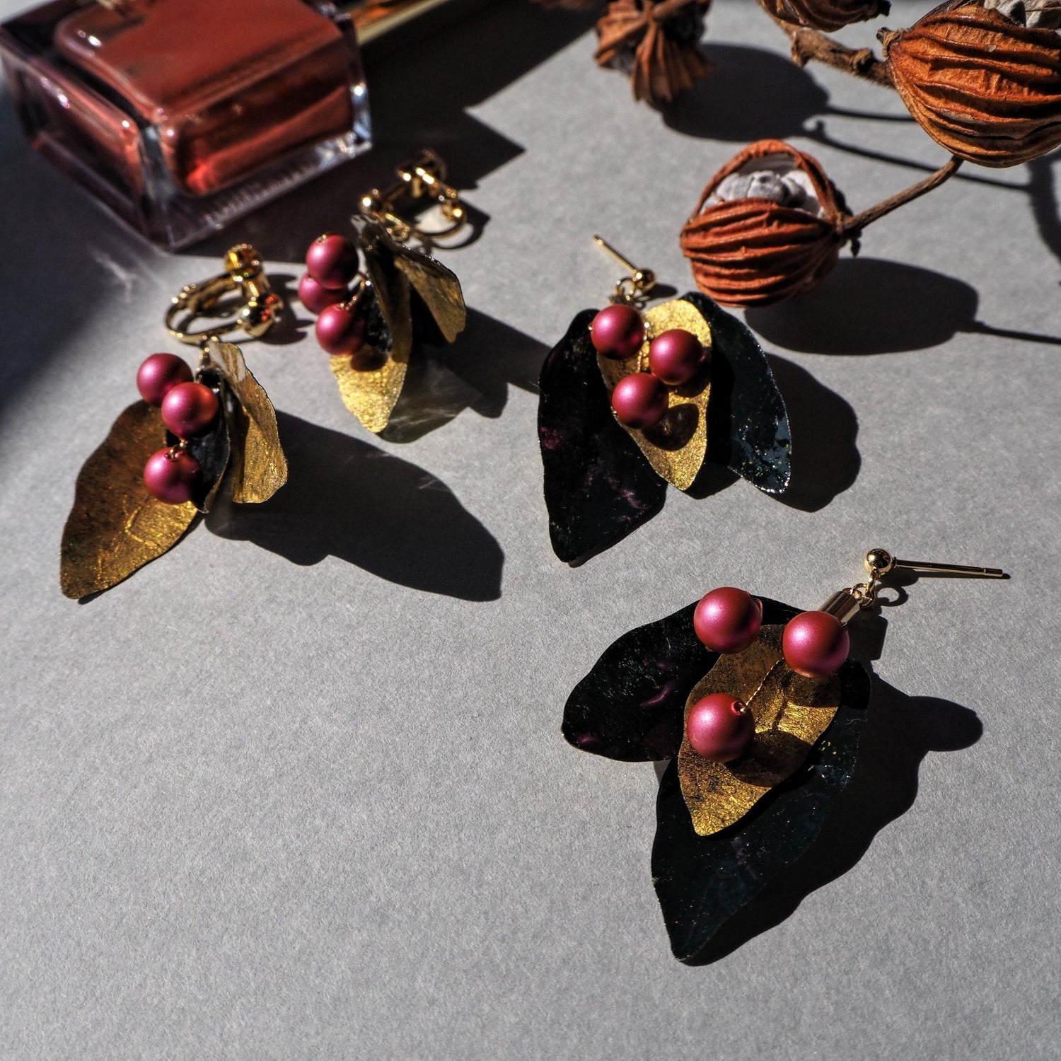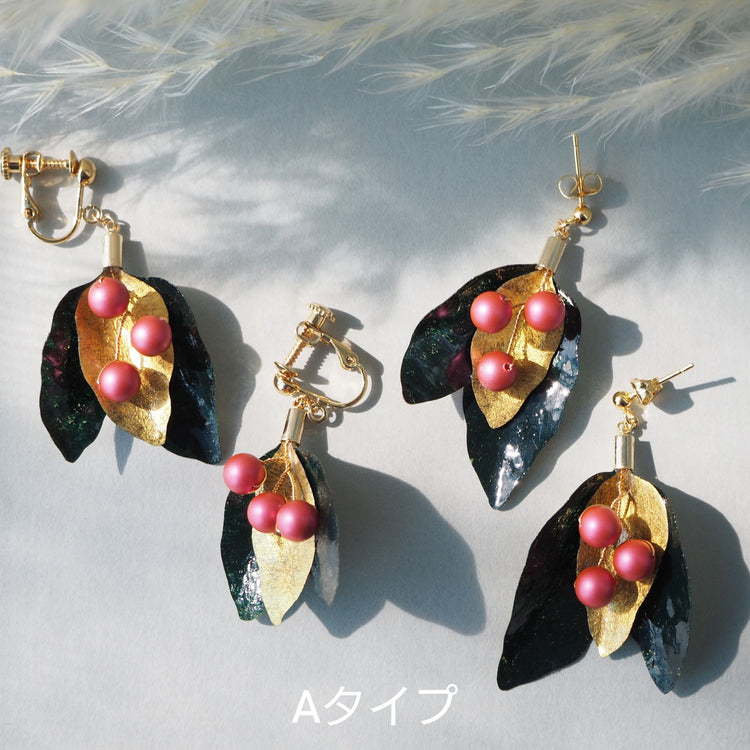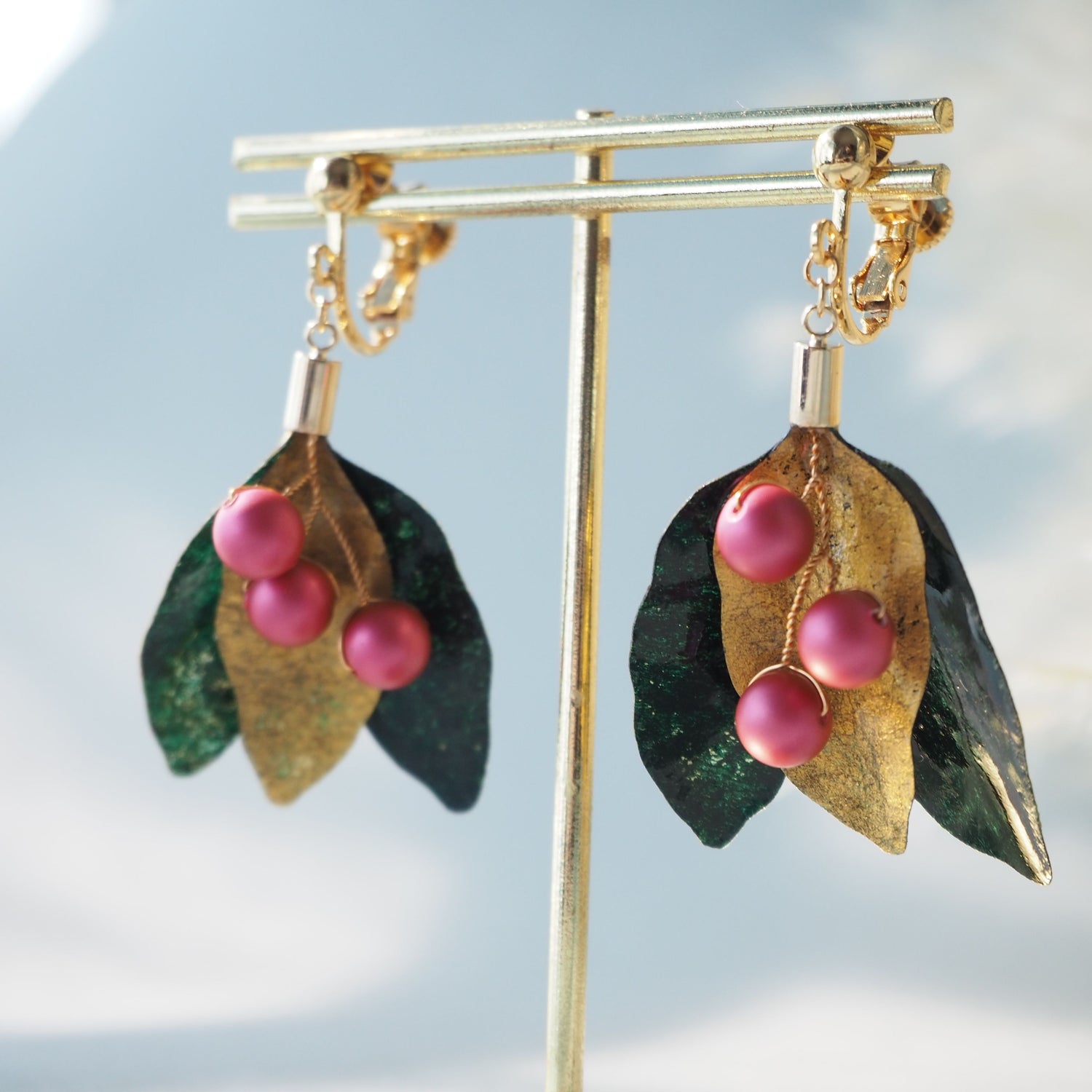 크리스마스 컬러 와시 소재의 피어싱 귀걸이/클립온 귀걸이, 스웨그 이미지 포함.