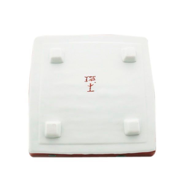 [에이세이] 받침이 있는 직사각형 6인치 접시, 붉은 유약, 물방울 무늬