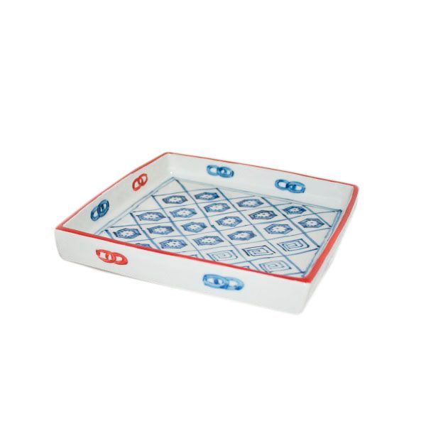 [에이세이] 발이 있는 직사각형 접시와 얼룩에 사라 무늬가 있는 접시