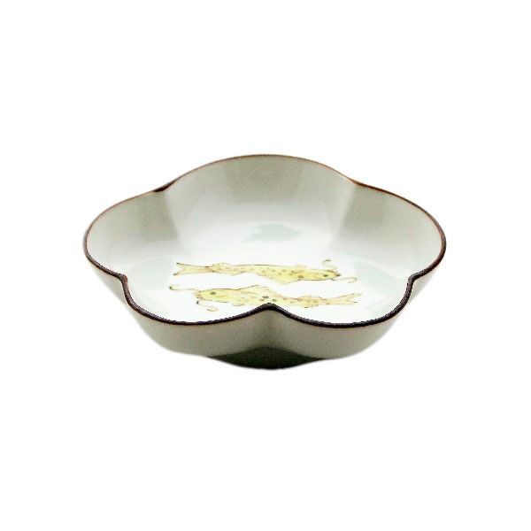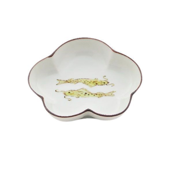 이 작은 소나무 모양의 접시는 로산진이 즐겨 쓰던 쌍어(雙魚) 무늬를 묘사하고 있습니다. 쌍어 무늬는 중국, 한국 등 여러 나라에서 오랫동안 애용되어 왔습니다.