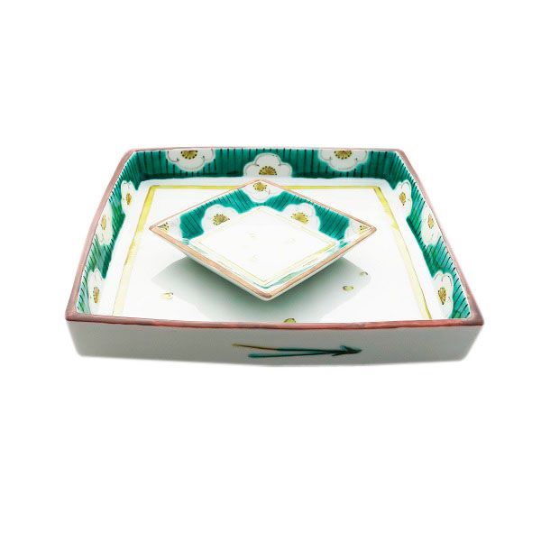 초밥, 오르되브르, 사시미, 크림 크로켓, 종이 포장지, 일본식 과자, 서양식 과자 등 어떤 요리에도 사용할 수 있습니다. 백자 무늬는 구타니 접시 테두리에 자주 사용됩니다.