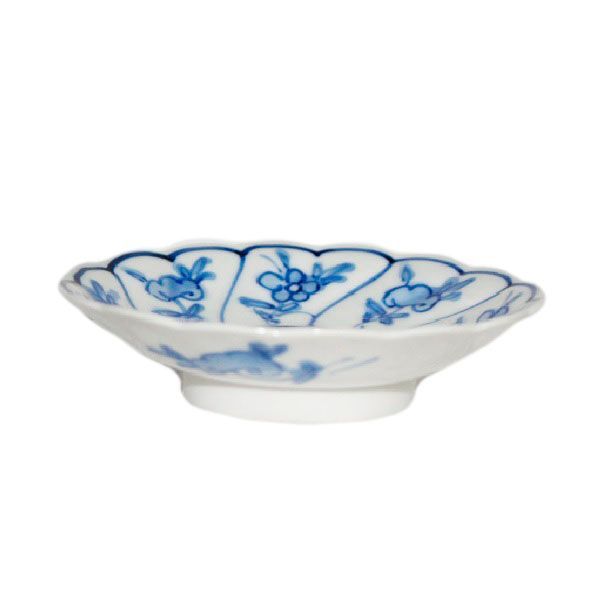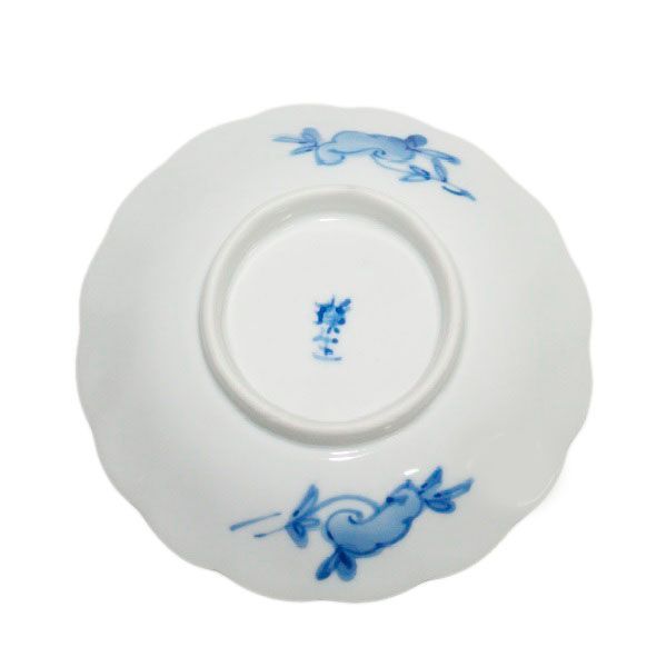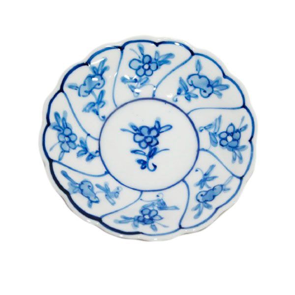 [에이세이] 삼각형 모양의 네온사인 문양이 그려진 꼬인 접시, 유약 아래 청화
