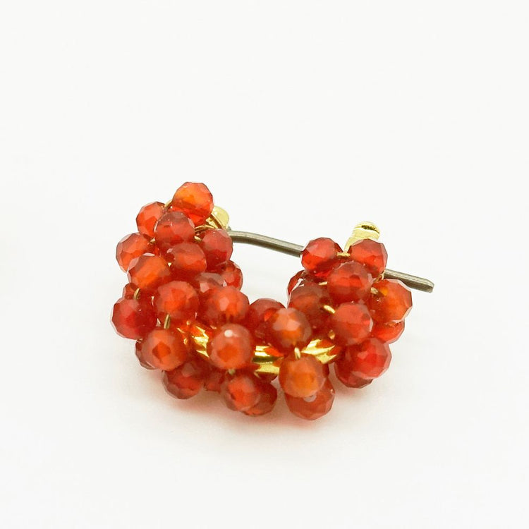 붉은 마노로 조립된 미니 사이즈 후프 피어싱 귀걸이.