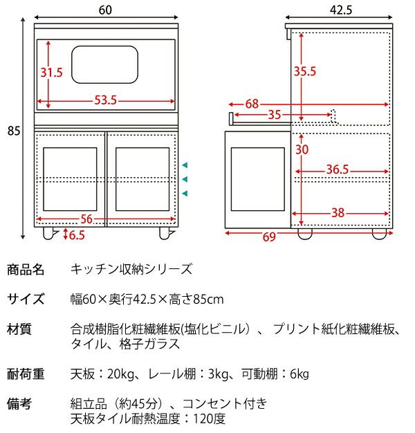 Tiles are laid on the top panel, which is very convenient for placing hot pots and toasters.