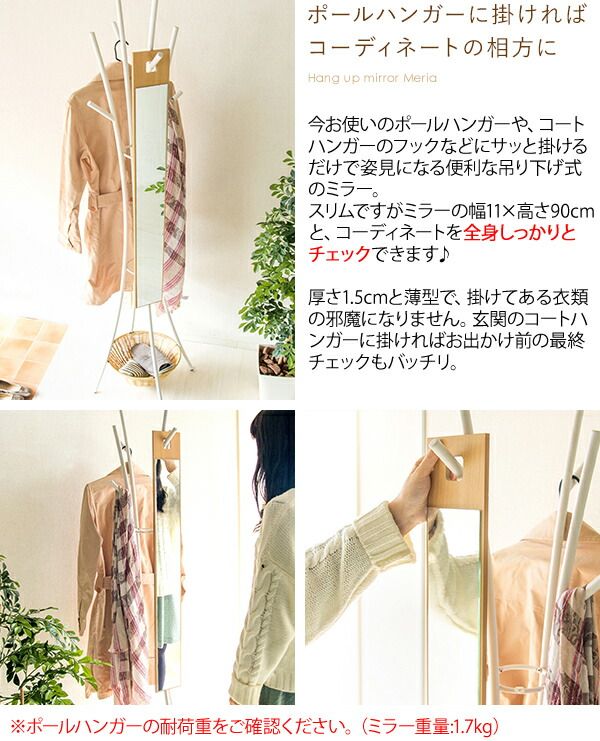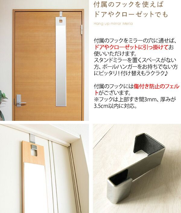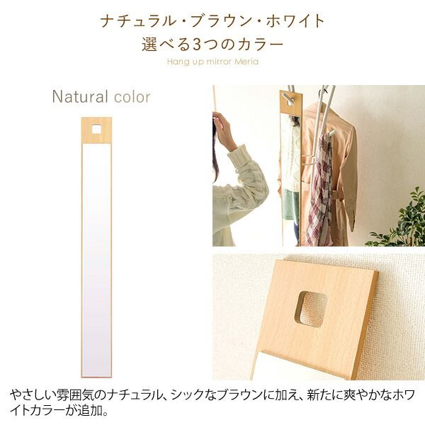 The soft natural-colored wood panel has square holes that can be hung on a pole hanger or hooks to instantly become a slim mirror. The included hooks can be used to attach it to a door or a closet.