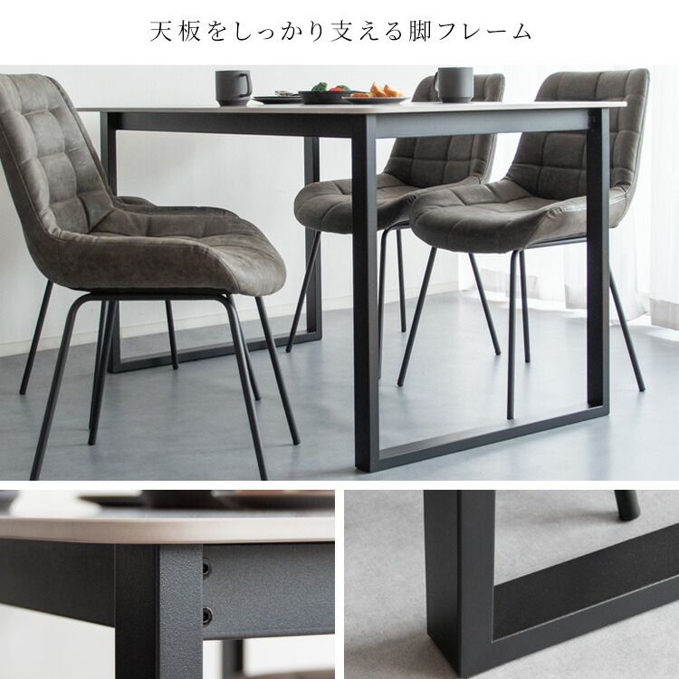 Dining set [Lement] consists of a dining table with a marble-like top made of ceramic and dining chairs quilted in a shape that fits the body.