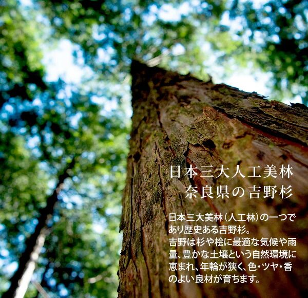 The beautiful annual rings and coloring create a luxurious atmosphere just by placing it. The unique aroma of Yoshino cedar and its shiny polished texture will add color and comfort to your room.