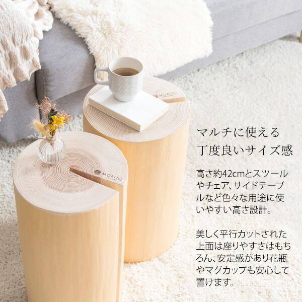 With its comfortable height, it can be used as a stool in a dining room, at an entrance, or at a counter. It is also recommended for use as a side table on a sofa or bedside table.