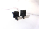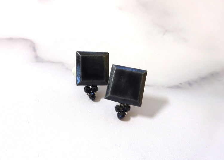 Pierced earrings in black with square and black spinel