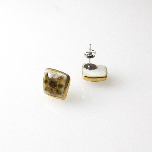 這些光亮的耳環在鑽石形框架中呈現一朵花朵。