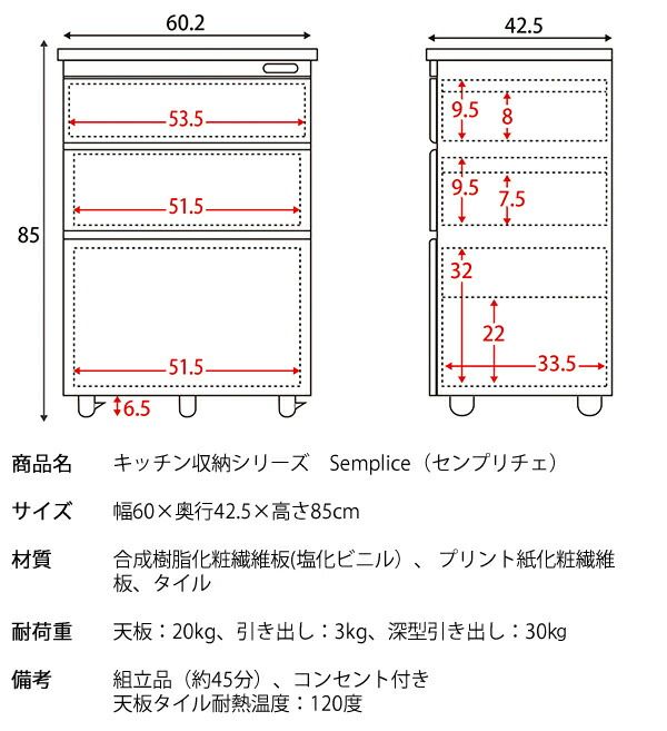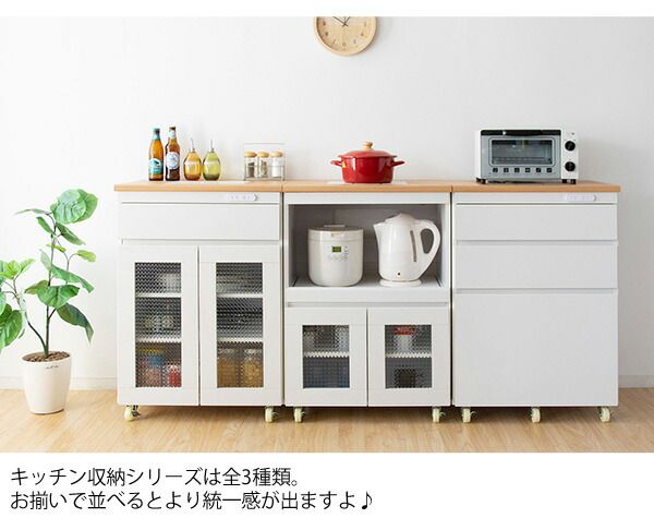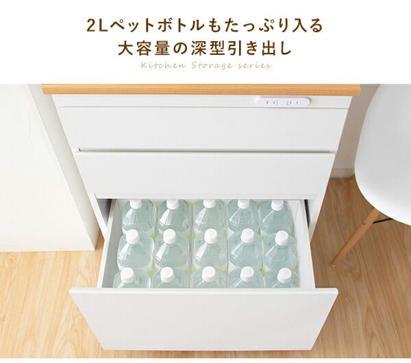 Semplice" is a kitchen storage series with a lovely white and natural look. It is attractive for its large storage capacity in spite of its compact size (60 cm wide).