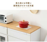 Tiles are laid on the top panel, which is very convenient for placing hot pots and toasters. There is also a sliding shelf and a beautiful glass-enclosed door for ample storage. With casters, it is easy to move when cleaning.