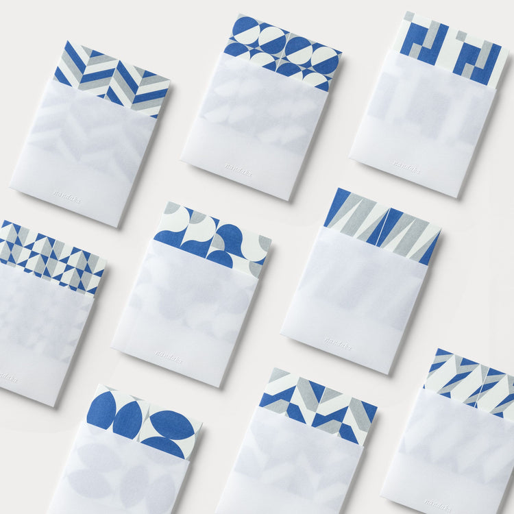 信封紙表面有細細的凹凸紋路,質樸的質感與卡片上的筆觸相得益彰。另一個關鍵點是,可以透過紙張看到裡面放置的卡片。